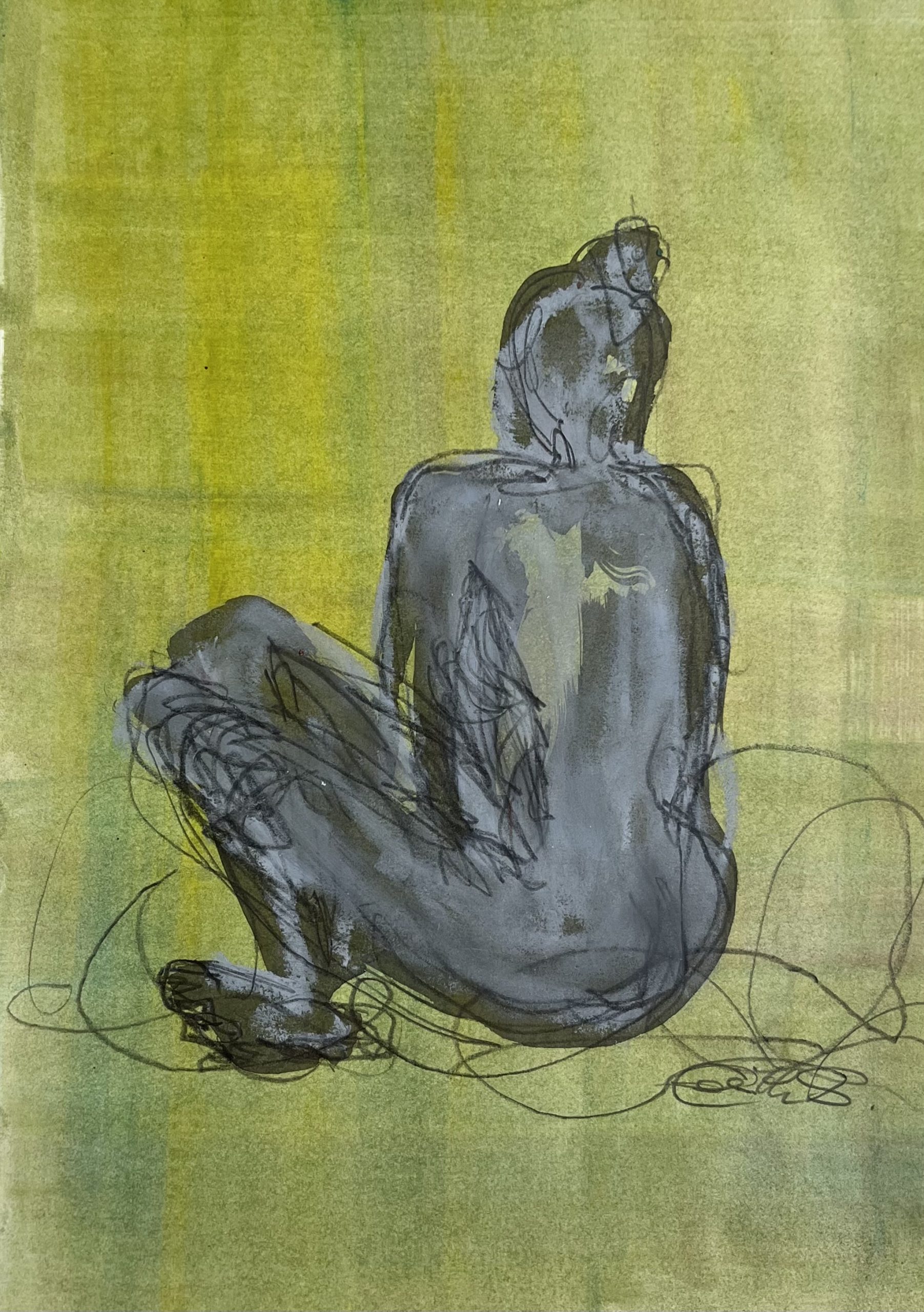 female back 18, Helle Ölkreide auf Papier, 29 x 21,7 cm, 2024