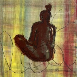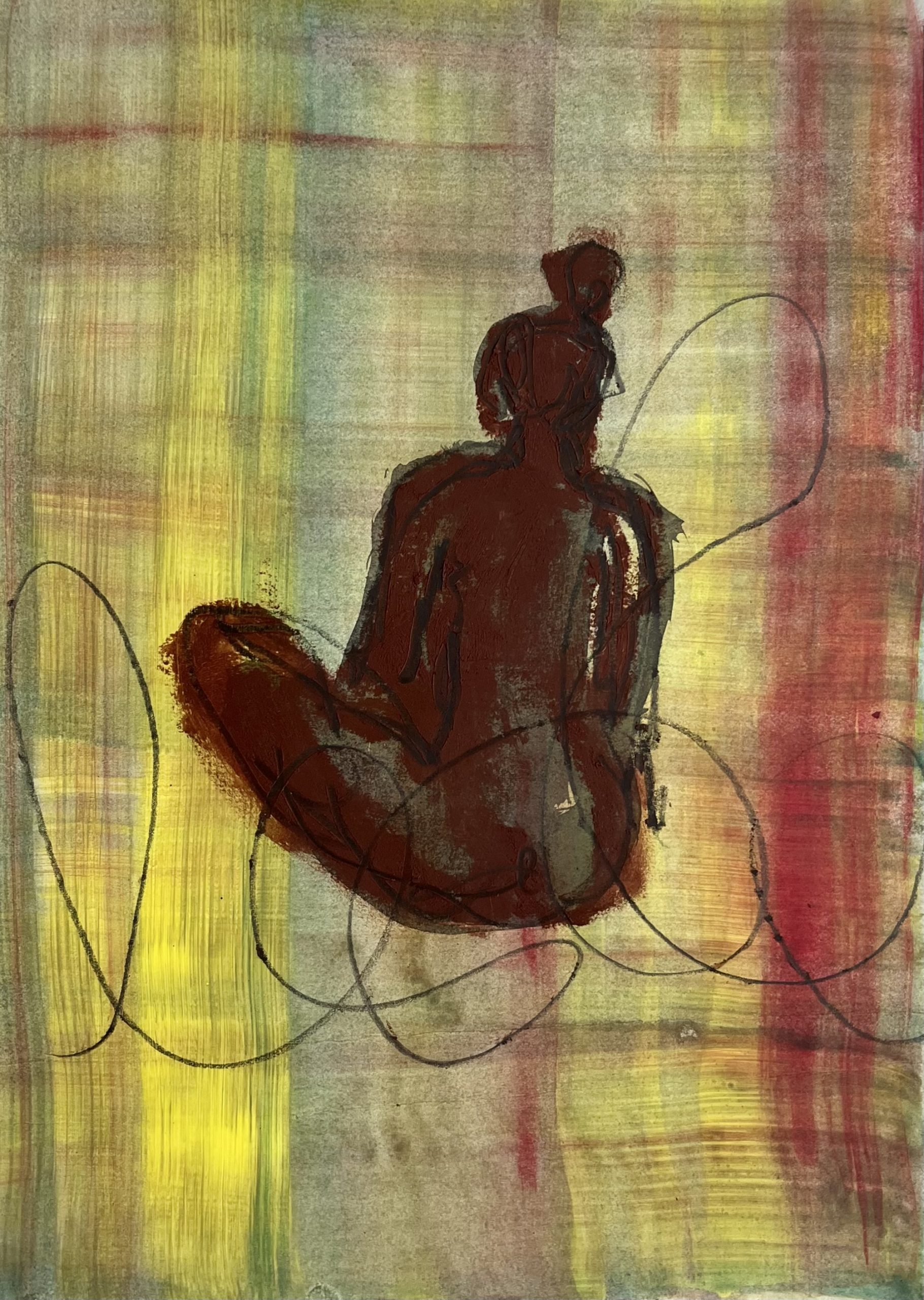female back 9, Dunkle Ölkreide auf Papier, 29 x 21,7 cm, 2024